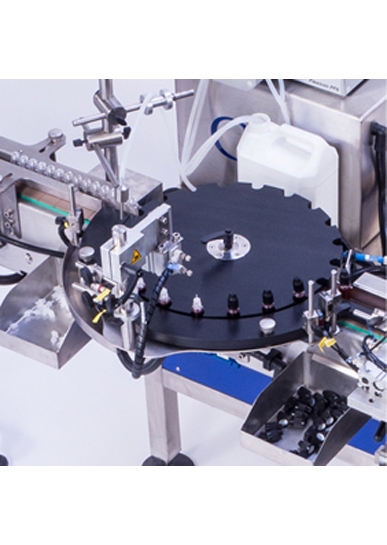 The E-Fill allows filling, screwing and labelling of flasks of very compact size. The peristaltic system allows to change the liquid in less than 2 minutes without cleaning the pump.