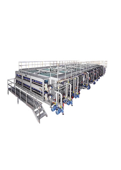 This tunnel pasteurizer is designed for industrial beverage applications in bottles or cans. It enables continuous thermal treatment through preheating, pasteurization, and cooling zones. The system is modular and customizable based on production needs. It offers precise control of temperature, flow rate, and exposure time.