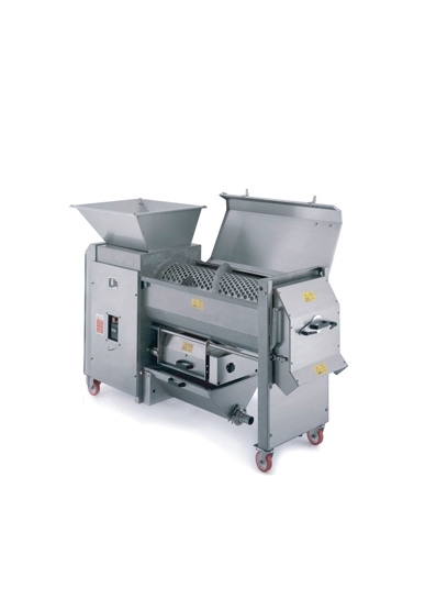 Construit en acier inoxydable 304, cet égrappoir/fouloir est équipé d'une trémie de réception de la vendange. Il est également équipé d’un lecteur de changement de vitesse ainsi que le tout nouveau système de réglage du panier « augmenter ou réduire la distance entre le tambour batteur et le panier ». Ce système permet de personnaliser l’égrappage selon la variété de raisin en cours de traitement. Un panier perforé laisse tomber les raisins égrappés entre deux rouleaux en caoutchouc réglables où ils sont délicatement écrasés et ensuite conduits à la sortie par une vis sans fin. Les rouleaux en caoutchouc sont mobiles et peuvent être inclinés pour faciliter le lavage. Son tambour batteur et son bassin à moût sont amovibles. Facilitant ainsi le nettoyage.