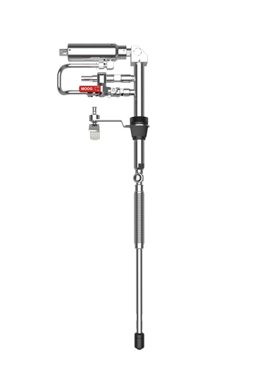 Portable cask cleaning machine that vacuums used water at the same time. The integrated injection system produces high pressure emptying the cask while cleaning. Turning and draining the cask is unnecessary.