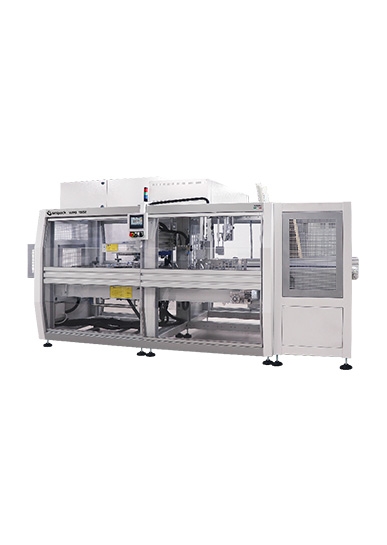 Latest generation monoblock for a production reaching up to 10.800 bottles per hour. The execution is fully automatic, box filling, box folding and sealing with cold glue. This machine is made of two operating units, one forms and seals the boxes, the other fills the boxes with bottles. Possibility to be equipped with multi-format heads to work with bottles of 62 to 108 mm diameter without changing any element.