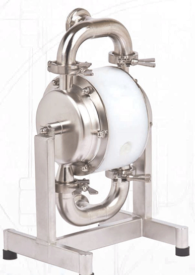 Les pompes à diaphragme sont des pompes qui demandent aucun besoin en énergie électrique pour fonctionner. Celle-ci fonctionne à l'aide d'air comprimé. L'air envoyé dans la pompe va activer un poumon central à deux cavités, quand une cavité se comprime ( qui permet l'aspiration du liquide), l'autre cavité va s'écarter et permettre l'évacuation du liquide. Ainsi ces pompes peuvent être utilisées dans le secteur de la distillerie, et sont souvent utilisées avec des monoblocs d'embouteillage électropneumatique.