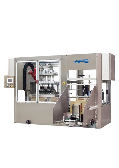 Monobloc de dernière génération pour une production pouvant aller jusqu'à 10,800 bouteilles par heure. L'exécution est complètement automatique, le remplissage des cartons, le pliage des cartons et le scellage par colle froide. Cette unité est composé de deux unités de fonctionnement, une qui forme et scelle les cartons, tandis que l'autre remplis les cartons avec les bouteilles. Possibilité d'être équipé avec des tête multiformat pour travailler avec des bouteilles d'un diamètre de 62 à 108 mm, sans aucun changement d'élément.