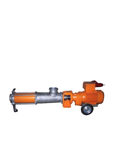 Cette pompe fonctionne avec une vis excentrique permettant de pomper des moûts plus ou moins liquides. Elle dispose d'un potentiomètre servant à régler la vitesse et d'un inverseur permettant d'orienter le tansport.